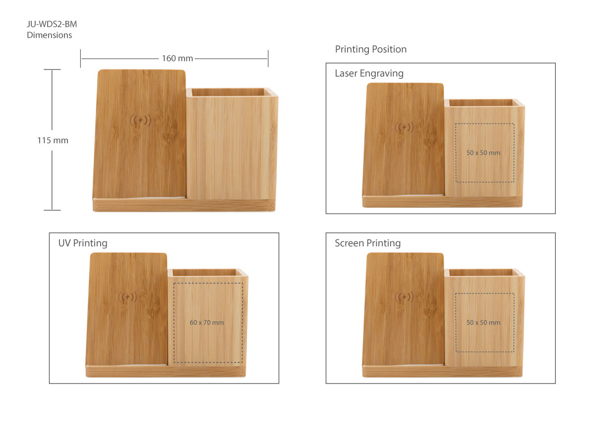 This customized pen holder with a charger is something that you can easily give to your friend or partner as an eco-friendly gift. For an e-commerce business, there are different ideas to demonstrate your branded pen holder which include presenting your bamboo pen holder with different designs engraved on it so that your customers could have various choices.