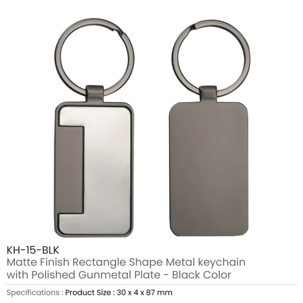 Metal Keychain Rectangle Gun Metal Matte Finish Plate